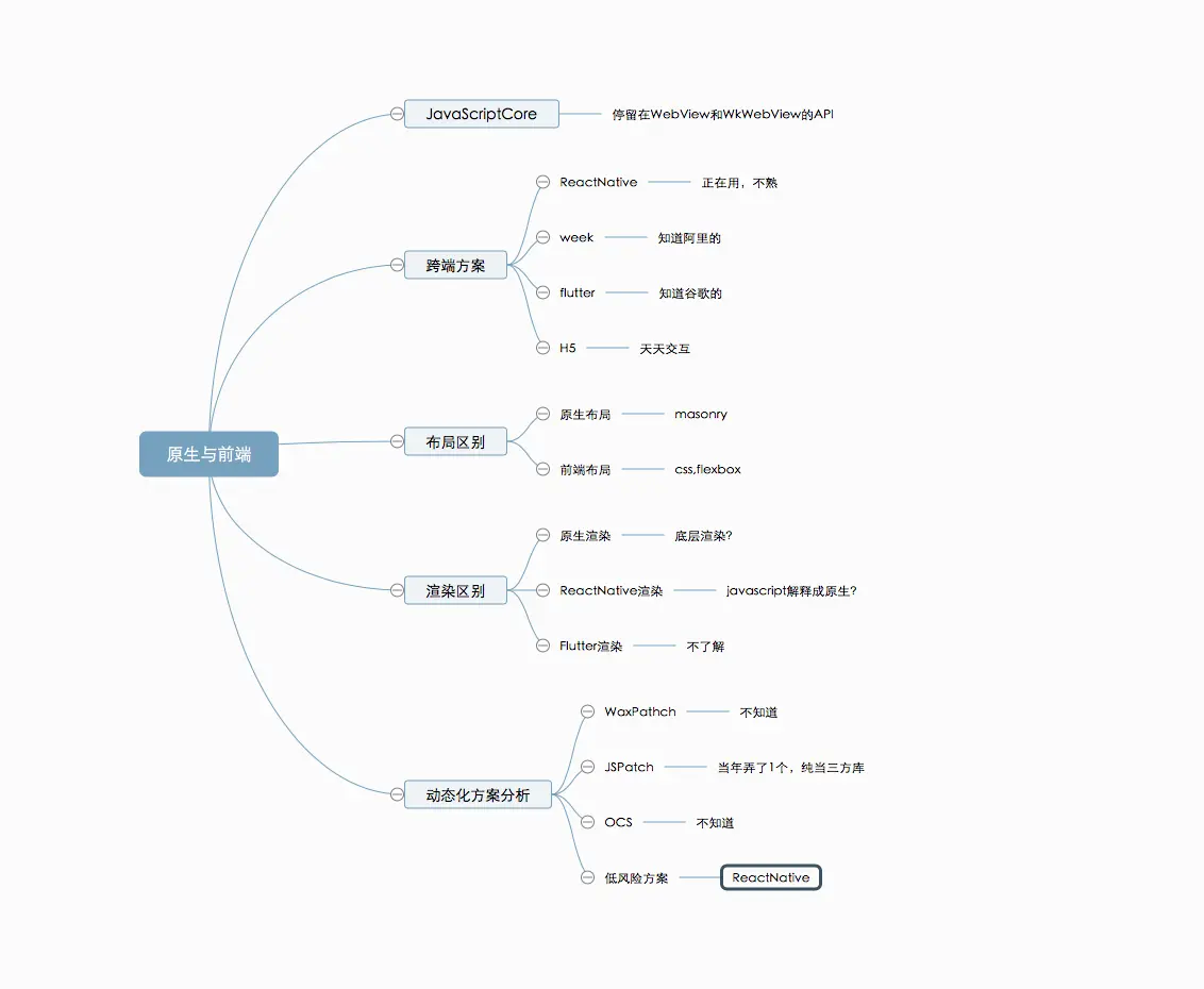 一上来戴老师就说了iOS开发伴随着移动互联网的兴起走过了10多年,我们假设这10多年产生的技术在以后也会产生,那么我么以后还要学5,6份热门技术。目前这10多年兴起的技术呢主要有组件化,热修复,动态化,大前端,ReactNative,Flutter,小程序等热门技术。这些程序其实通用的底层技术其实是差不多的,和前端有关的就是javaScriptCore,和渲染又关的是使用的WebCore中的Skia这样的渲染引擎。至于组件化是解藕这个说法,我倒是十分赞同。因为公司里面有个业务也是做的特别的蛋疼,产品脑子里灌的水最终都要用程序员流的汗来实现。我当时如果按产品的逻辑直接简单的不停复用的化,会非常的侵入原始代码。最后我通过在网上找到的一些组件化博客解决了这个问题。