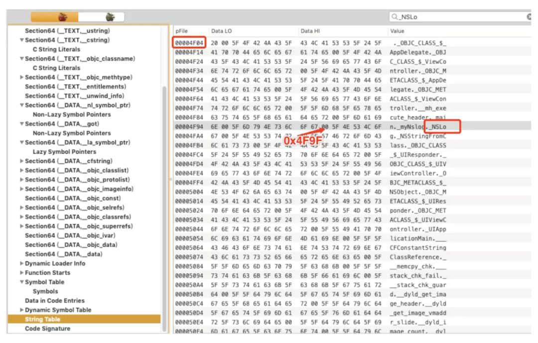 1) 在 String Table 中找到该字符串在 Symbols Table -> Symbols 中的位置: