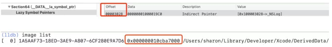 4) 懒加载表中对应位置的 Offset 值就是该指针最终的偏移量: