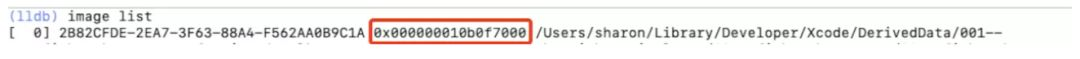 在两个 NSLog 处分别加上断点,将工程 Run 起来,把 Debug -> Debug Workflow -> Always Show Disassembly 勾选上,用于查看汇编信息,断点断住后获取 MachO 在内存中的首地址: