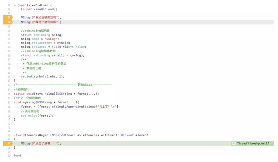 为了更好的理解 fishhook 是如何 HOOK 系统的 C 函数,我们以 HOOK NSLog 为例,从汇编着手来一步步去分析,为大家扒开 fishhook 实现 HOOK 系统 NSLog 的全过程。