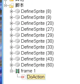 打开后找到脚本组下frame1的DoAction脚本