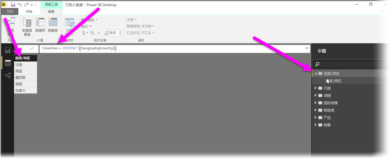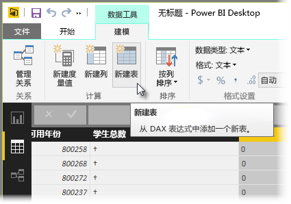 从“建模”选项卡选择新建表,以打开公式栏。