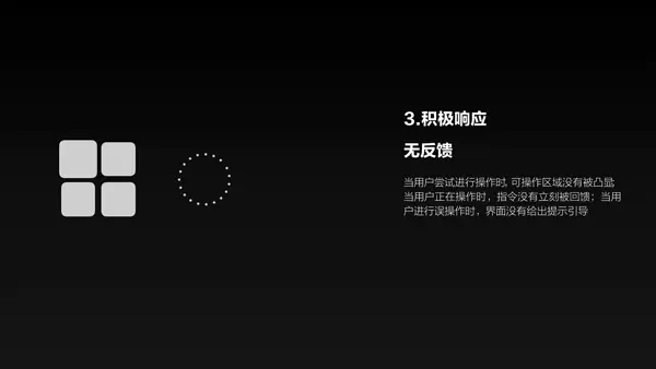 3、积极响应:与常规的线上产品相比,手势交互对及时响应的需求更高。当用户尝试进行操作时,可操作区域没有被凸显;当用户正在操作时,指令没有立刻被回馈;当用户进行误操作时,界面没有给出提示引导----这些情况都可能导致用户失去耐心。所以无论用户进行了什么动作,都要尽最大可能的给予反馈,告诉用户这是对的,还是错的,询问用户这是否是他想要的。