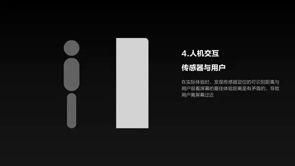 4、用户定位:在设计硬件时,要在对用户的观看体验和操作体验进行了调研之后,定义合适的人机交互距离,并据此重新调整了传感器的识别距离和摄像头的高度。否则在实际体验时,传感器定位的可识别距离与用户观看屏幕的最佳体验距离是有矛盾的,就会导致用户看屏幕时感到不适。