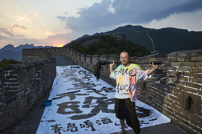 我最喜欢的合作项目之一就是青岛啤酒和天与空广告公司合作的项目。天与空的创始人之一黄海波和我是好朋友,他是个拼命三郎鬼点子也多,最重要的是他知道如何来“勾引”我。他用可以“在长城上写书法”这件事打动我来参与这个项目,其实他和我说这件事的时候八字都没有一撇呢。每一次的活动都没有做好充足的准备,都是仓促上阵,挣扎、反复、临时修改等等,但每一次都这样做成了。