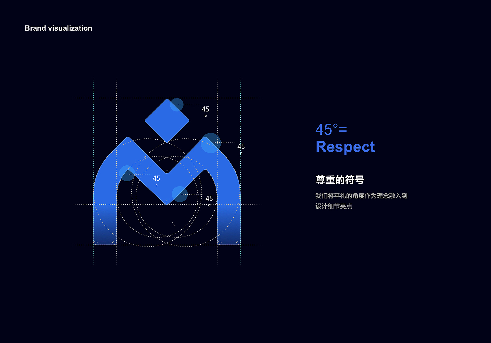 45度角的定义来自于平礼弯腰的标准角度,作为品牌语言,象征着用户间的传授知识、相互尊重的美好情怀。