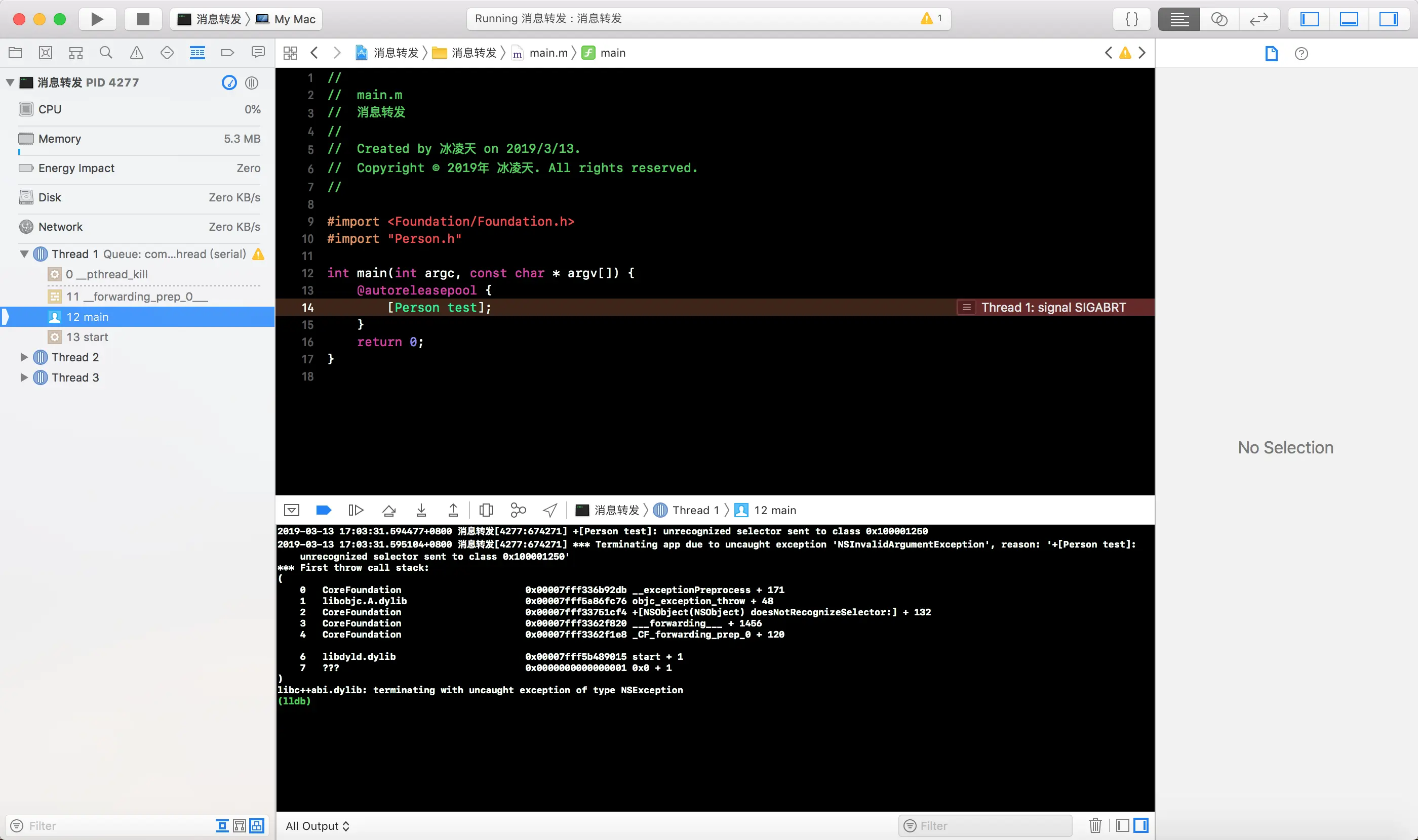 main函数中, 只调用了[Person test]