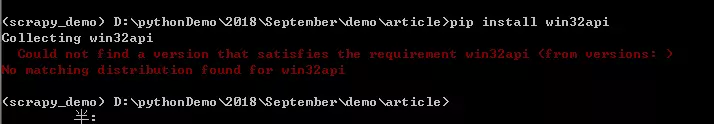 “Could not find aversion that satisfies the requirement win32api (from versions: ) No matchingdistribution found for win32api”。