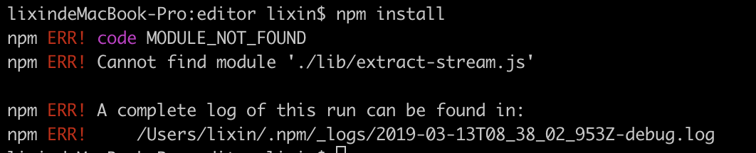 npm install报错, npm ERR! code MODULE_NOT_FOUND xinli_lx 2019-03-13 2,920 阅读1分钟 npm install的时候遇到这样的问题,升级npm的版本也会报出相同的错误。 解决方法: https://www.cnblogs.com/xxcanghai/p/8205500.html