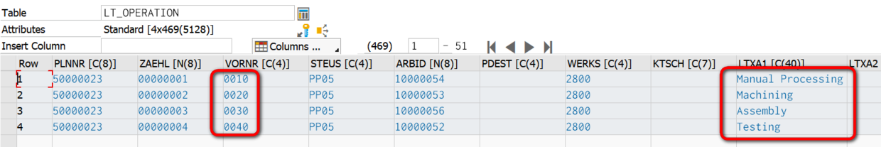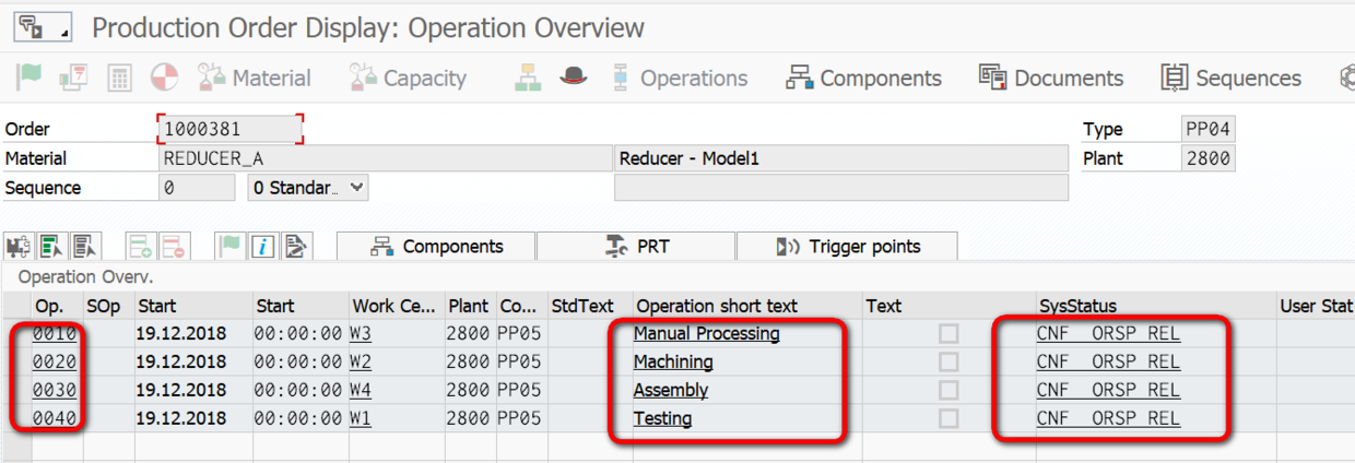 在S/4HANA事务码CO03显示的Production Order里,我希望用ABAP代码显示出该订单的operation(工序)ID,描述和状态Status,如下图所示: