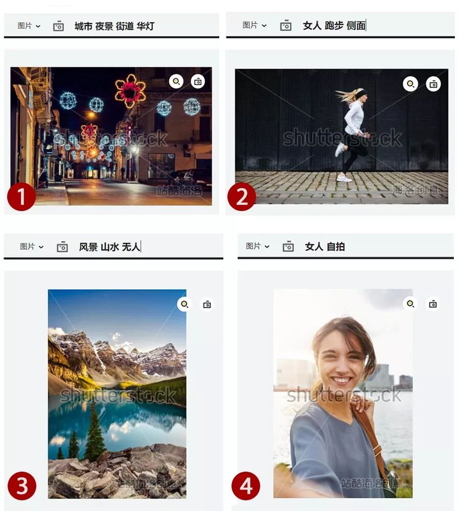 这种图不难做,你打算直接用一部手机和几张摄影作品作为画面的主视觉,于是去图片网站找了几张能体现该手机拍照功能好的图片: