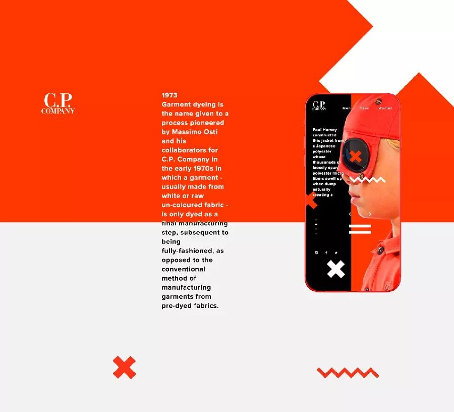 ▲除了把图片倾斜之外,LOGO也与内文错开移到了左上角,最下边的直线也可以延伸到了版面之外。