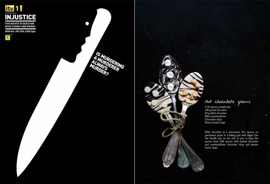 从上图中可以看出,图片虽然做了倾斜,却是在对齐的基础上做的变形扭曲;版面中的元素虽然不是都对齐了某条直线,但是没有哪一个元素是孤立的,每一个元素都与版面中的其他元素有对齐关系;更重要的是,左边文字版块的视觉重心与右边图片版块的视觉重心也是呈水平对齐的,所以整个画面才得以平衡。