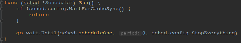 最终的调度接口进入的是pkg下的scheduler.go文件,通过启动单独的协程处理调度工作。