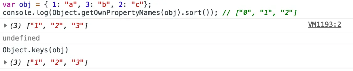 console.log(Object.getOwnPropertyNames(obj).sort()); // ["0", "1", "2"]