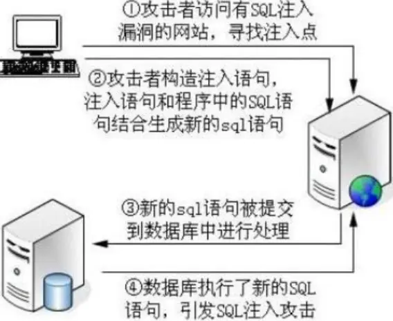 SQL注入: 攻击者把sql代码命令插入到web表单的输入域或页面请求的查询字符串,欺骗数据库服务器执行恶意的sql命令