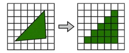 光栅化:决定哪些像素被集合图元覆盖的过程。