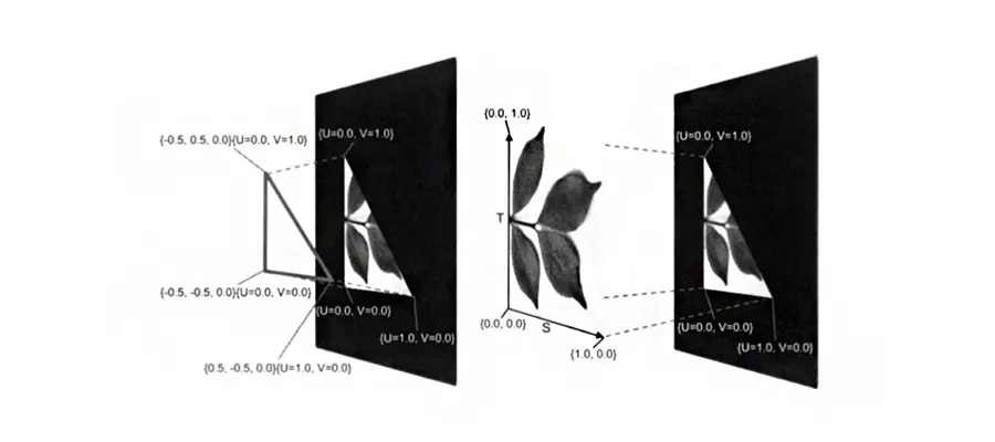 纹理坐标:纹理坐标系的范围是 0 ~ 1,是一个二维坐标系,原点左下,用来标明该从图像的哪个部分采样(使用纹理坐标获取纹理颜色)。