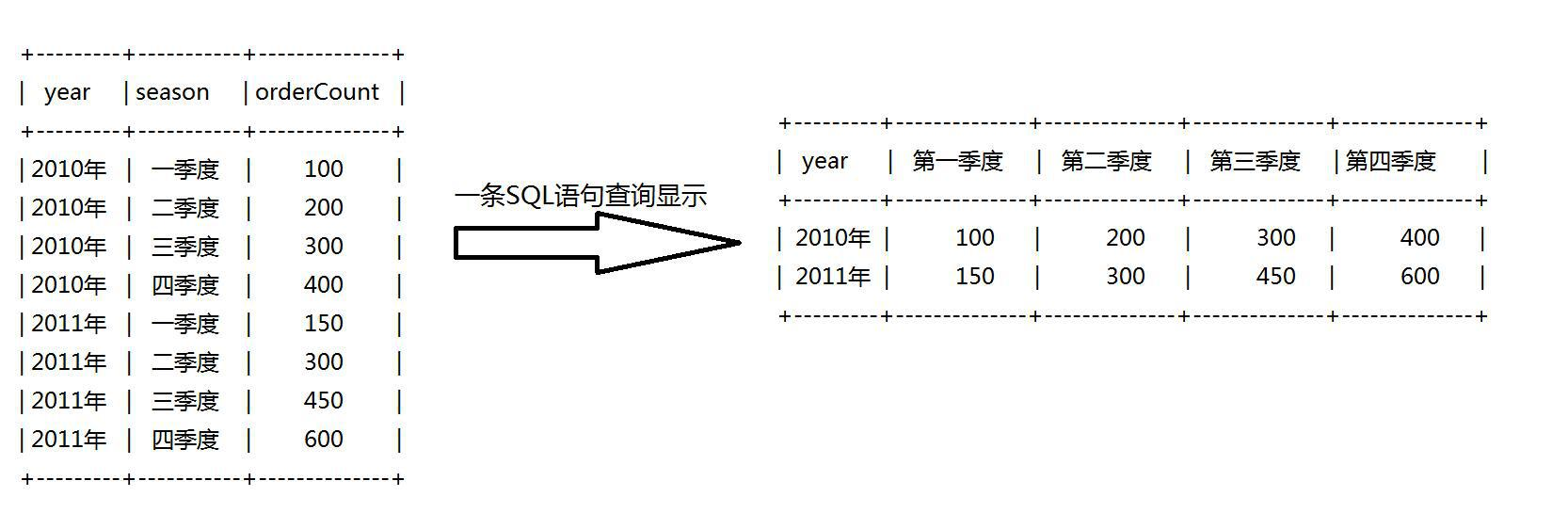 -> SUM(IF(season = '一季度', orderCount, null)) AS '第一季度',