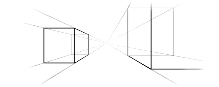 而学过绘画的都知道人的视野并不是平行的,而是有一个透视图的概念,眼睛前有实际平行的两条线段发出(相当于z轴方向的向量),人眼看起来会相交于一点上(焦点,Focal point),这才产生了3D感。