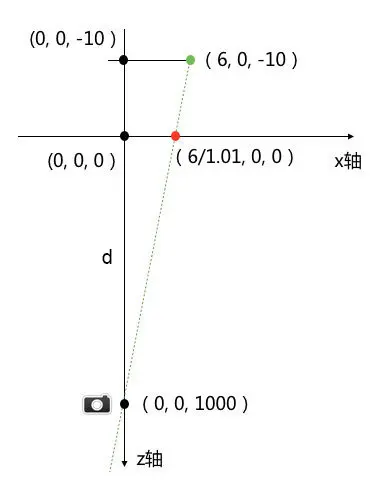 是0,也就是说认为焦点无限远,因此看起来没有任何3D感。假如我们取d越大,则看起来越没有投射和3D感;取d越小,则3D感和失真感越强烈。