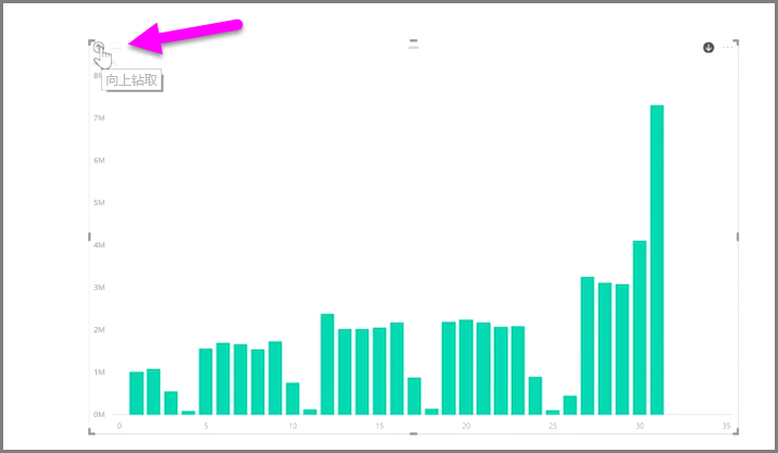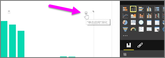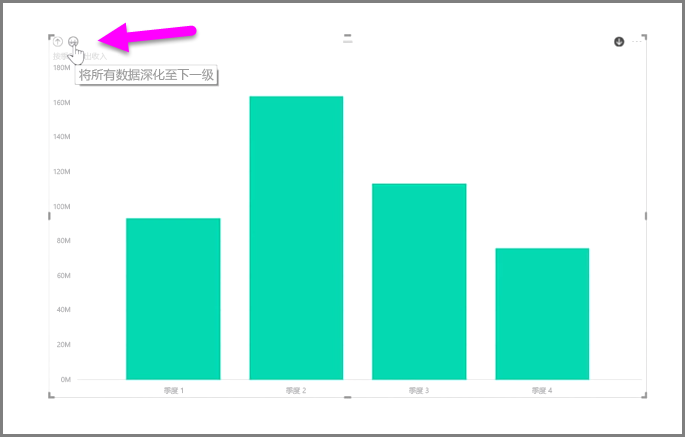 同时,你还可以深化视觉对象上显示的所有数据,而非只是所选字段,方法是使用“钻取全部”双箭头图标,它也位于视觉对象的右上角。