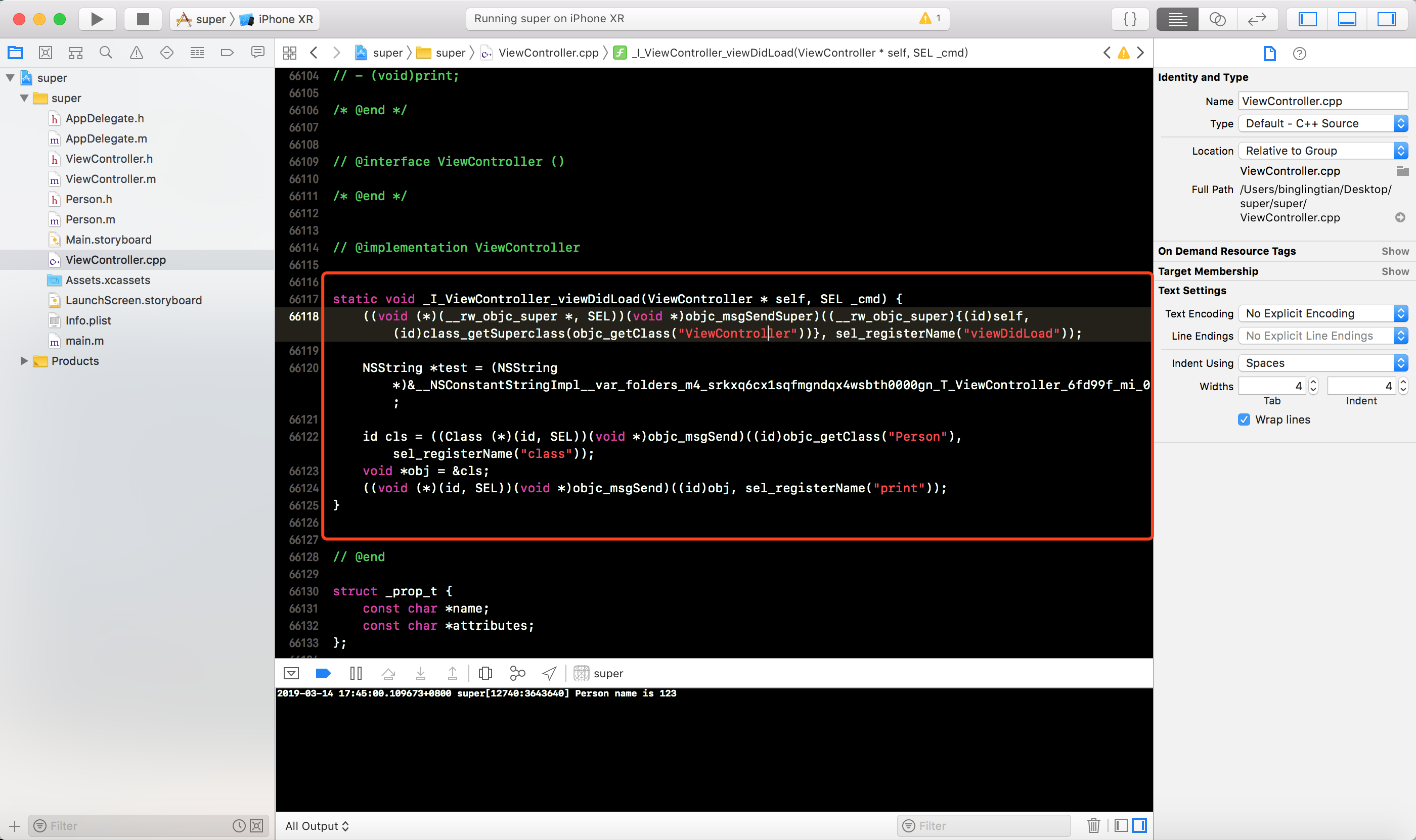 ((void (*)(__rw_objc_super *, SEL))(void *)objc_msgSendSuper)((__rw_objc_super){(id)self, (id)class_getSuperclass(objc_getClass("ViewController"))}, sel_registerName("viewDidLoad"));