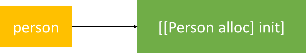 person是一个指针, 存储着[[Person alloc] init]的地址, 所以person指向刚创建的Person实例对象