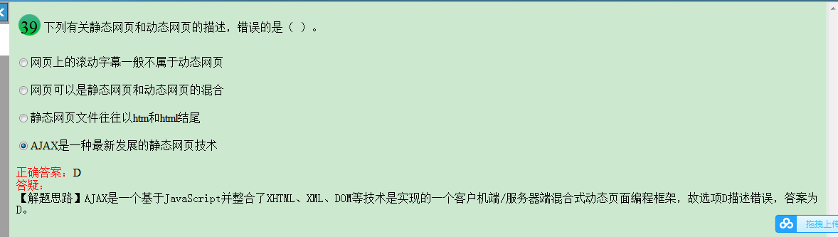 AJAX是一个基于JavaScript并整合了XHTML、XML、DOM等技术,是实现的一个客户机端/服务器端混合式动态页面编程框架。