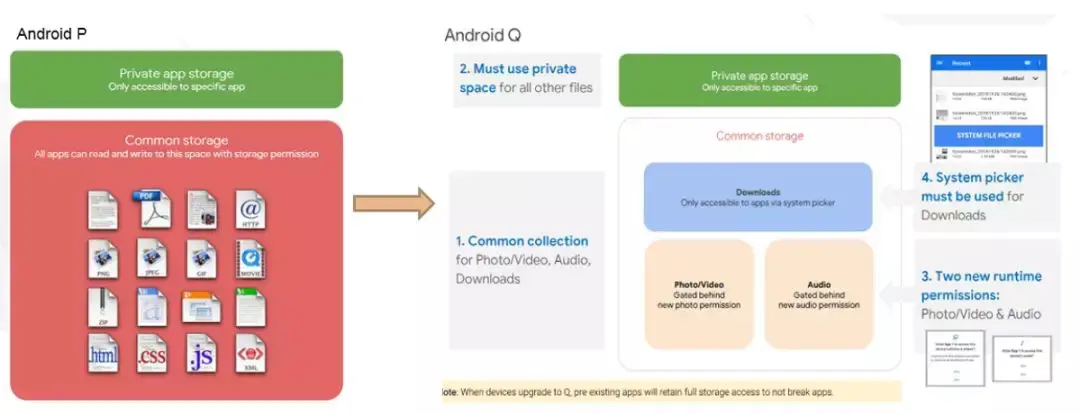 应用访问限制是Android Q影响最大变更之一。在Android Q系统中,应用只可以通过路径读取自己应用沙箱内的文件,如果需要读取应用沙箱外的文件,需要使用安卓统一接口来实现。该变更对大部分应用都会产生较重大的影响,需要开发者进行重点关注,后续我们也将以专题的形式来详细解读应该变更的影响和应对策略。