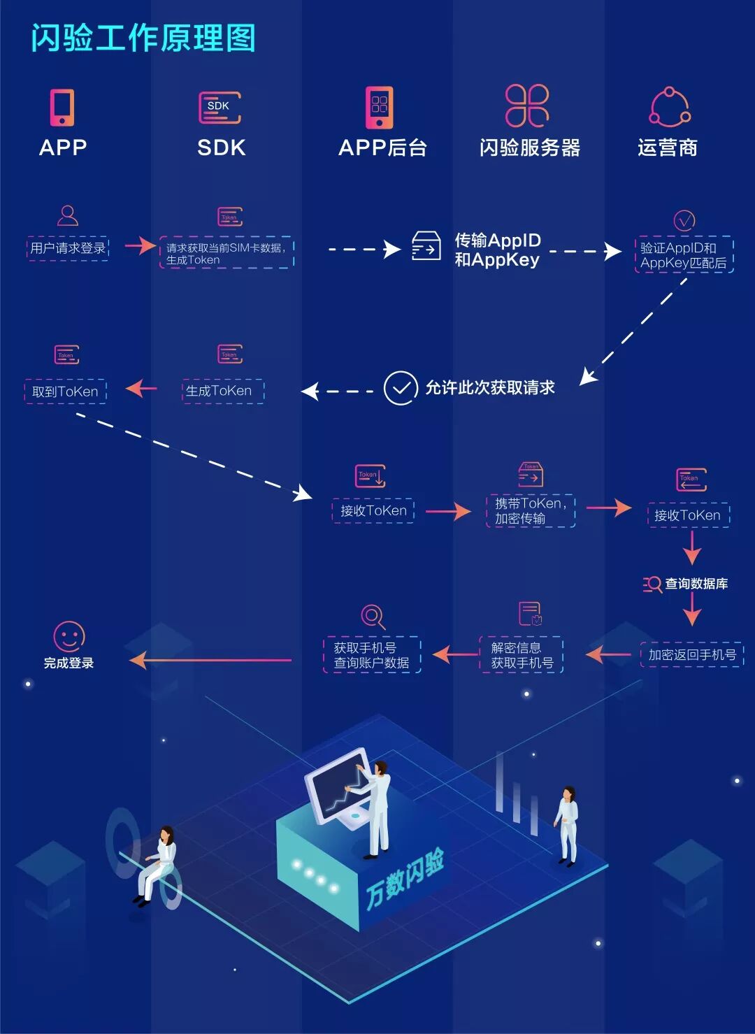 对于这一缺陷,创蓝万数推出了支持三网合一(联通、电信、移动)的“免密一键登录”验证产品---【闪验】。闪验整合了三大运营商的“本机号码一键免密登录”功能,以SDK的形式集成进APP,确保其在与APP集成的过程中保持高兼容性和高稳定性,同时支持iOS和Android系统。