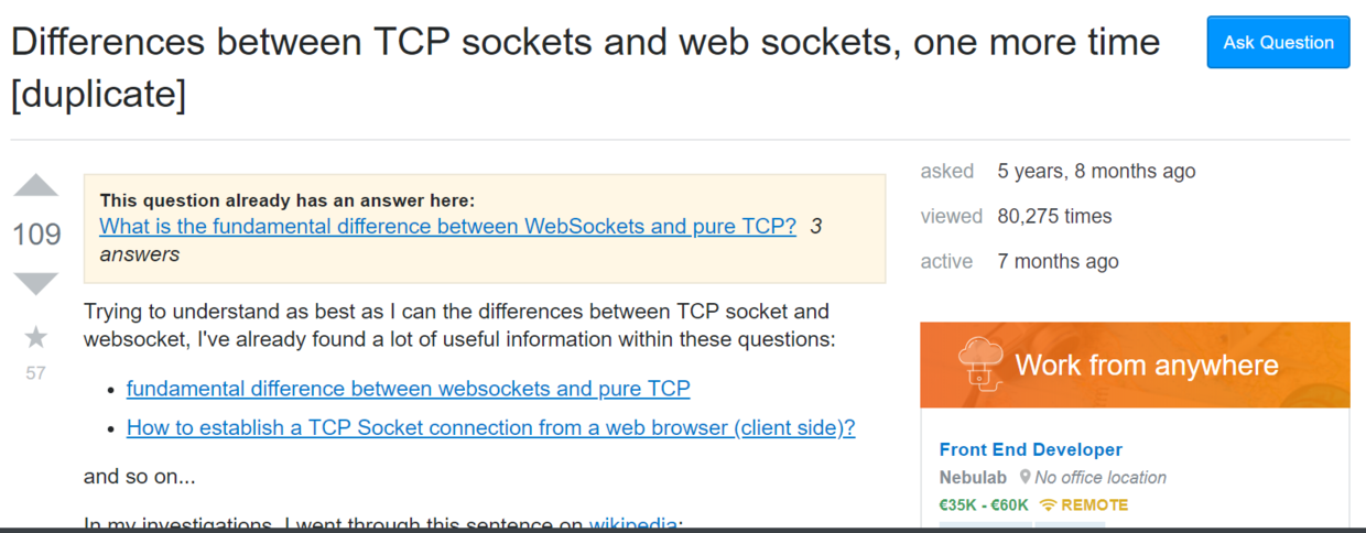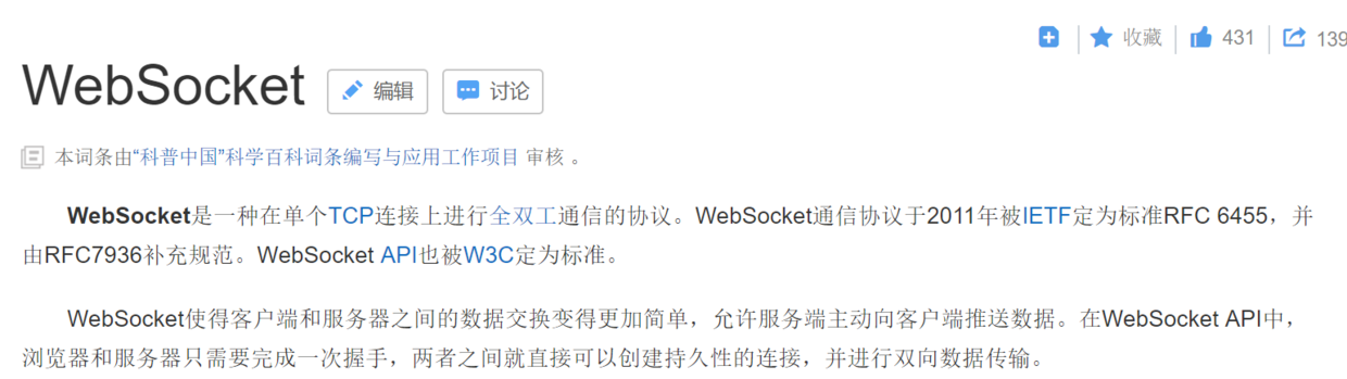 小编先习惯性的看了下某中文百科网站对Web Socket的介绍,觉得很囧。如果大家按照这个答案去参加BAT等互联网公司的前端开发面试,估计会被鄙视。
