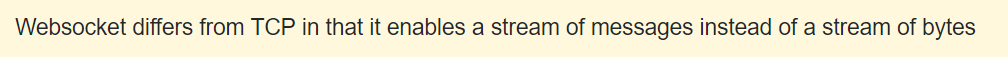 这个区别在维基百科上也有清晰阐述: Websocket differs from TCP in that it enables a stream of messages instead of a stream of bytes