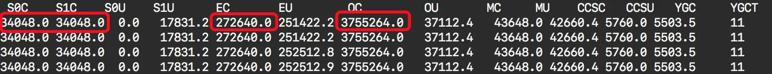 -Xms4000m -Xmx4000m -XX:+UseConcMarkSweepGC -XX:CMSInitiatingOccupancyFraction=70 -XX:MaxDirectMemorySize=512m -XX:+UseCMSInitiatingOccupancyOnly -XX:SurvivorRatio=8 -XX:+ExplicitGCInvokesConcurrent -XX:MetaspaceSize=512m -XX:MaxMetaspaceSize=512m -XX:-OmitStackTraceInFastThrow -XX:+PrintGCDetails -XX:+PrintGCDateStamps -Xloggc:/var/www/logs/gc-%t.log -XX:+UseGCLogFileRotation -XX:NumberOfGCLogFiles=5 -XX:GCLogFileSize=10m -XX:+HeapDumpOnOutOfMemoryError -XX:HeapDumpPath=/var/www/logs -Djava.io.tmpdir=/var/www/tmp -Dio.netty.availableProcessors=4 -XX:ParallelGCThreads=4 -Dpinpoint.applicationName=crawler-worker.product-bank这样,其中-Xms4000m是初始化堆大小,-Xmx4000m是最大堆大小,然后重启应用,重启后,就收到ygc频繁的告警,然后用jstat -gc pid 3000看了下,发现了奇怪的地方(如下图) 年轻代总容量才300多m(S0C+S1C+EC),而年老大总容量(OC)有3700多m,这种情况就直接导致了,直接分配对象空间的eden区域很容易就占满了,而直接触发ygc,而导致这个问题的原因呢,是忘记配置-Xmn1024m参数导致,这个参数就是制定年轻代的大小,这里的大小配置成整个堆的1/4至1/2都是合理的,加上这个参数后,刚启动应用就ygc时间过长的问题就得到了解决。