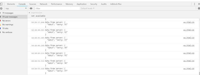 浏览器端每隔三秒收到服务器推送的消息,打印在console上: