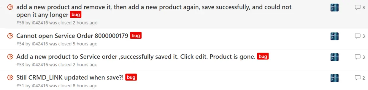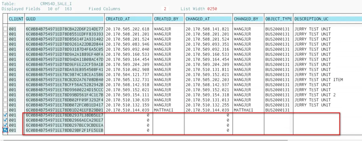 举个例子: 创建新的service order,维护header的shipping data,此时order和shipping data的mode 都是creation,然后创建line item,添加product,header的shipping data带到line item,然后在line shipping data做修改,item的mode变成了change,此时不存盘,直接删除该item,然后马上另外创建一个item,继续编辑,此时第二个item的mode是creation,前一个item的change mode变为deletion,然后再删除第二次加的line item,不存盘,再创建第三个product,维护一些数据,存盘。此时我代码里的buffer处理会出问题,存到DB确实有一条item数据,但是已经corrupt掉了。 由于我buffer处理logic有bug, 我花了很大功夫最后发现是第二次被删除的那条数据的内容被错误存到了DB里: