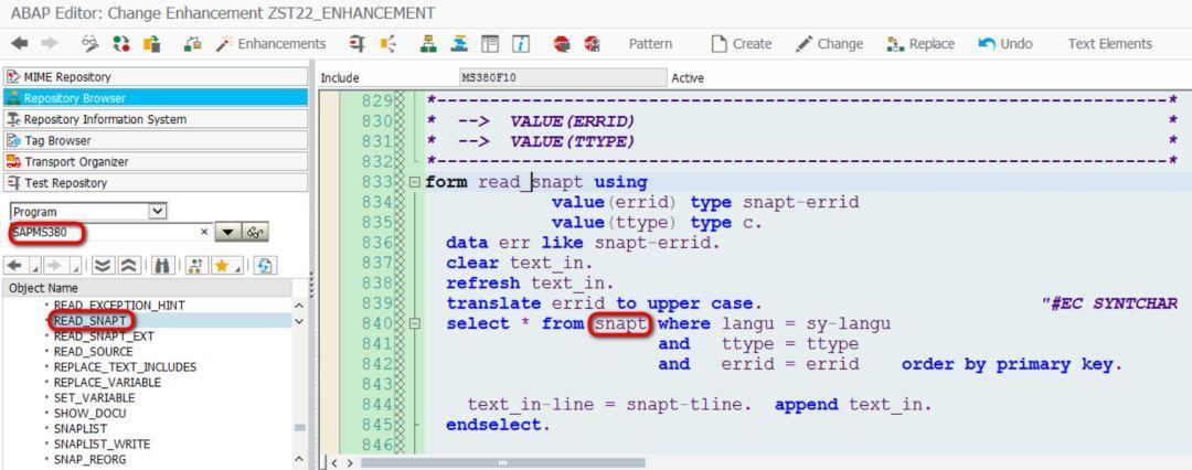 实现步骤非常简单,在ST22标准程序SAPMS380的subroutine read_snapt内创建一个隐式增强。