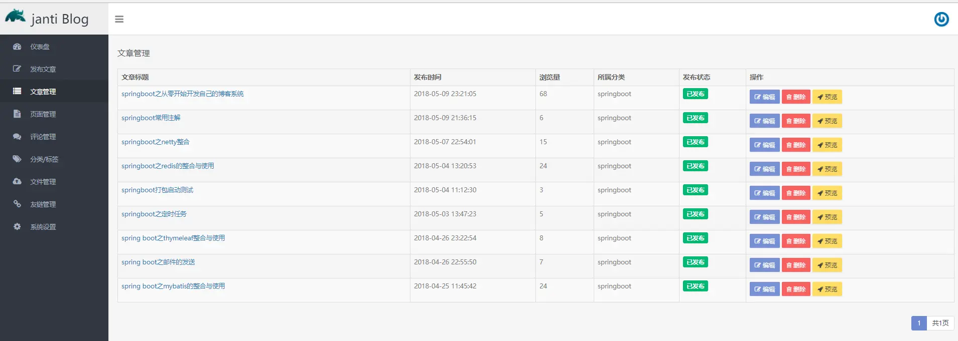 对于刚学习springboot的同学,最好的就是拿一个项目练练手。在编码过程中遇到的问题并解决,这都是宝贵的经验。 用springboot开发的博客系统,简单而且实用,适合做练手项目。
