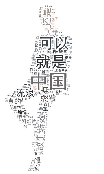 6 影评词云图词云图制作时,先读取CSV文件一dataframe形式保存,去除评论中非中文文本,选了胡歌照片作为背景,并设置了停用词表。