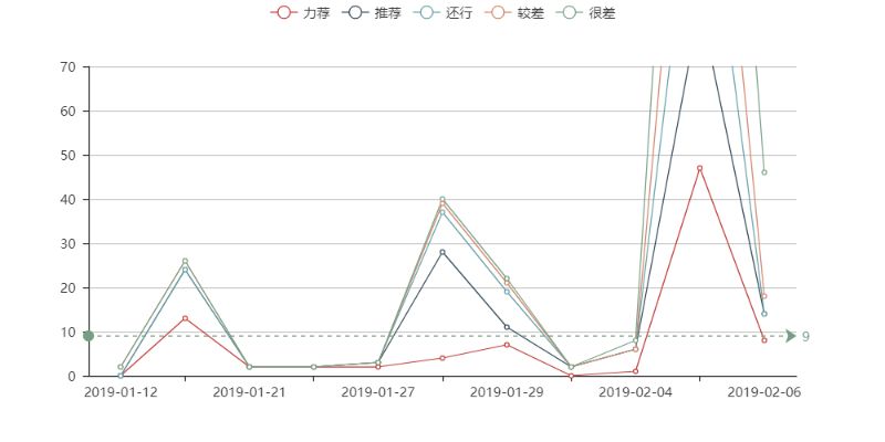 attr, val = [], []info = count_sentiment(csv_file)info = sorted(info.items(), key=lambda x: x[0], reverse=False) # dict的排序方法for each in info[:-1]: attr.append(each[0]) val.append(each[1])line = Line(csv_file+":影评情感分析")line.add("", attr, val, is_smooth=True, is_more_utils=True)line.render(csv_file+"_情感分析曲线图.html")