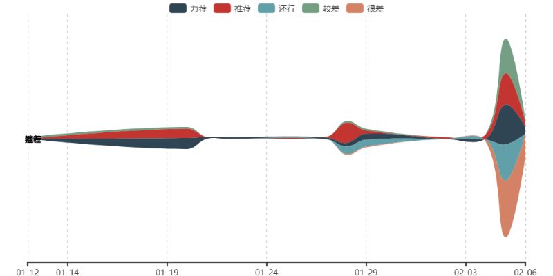 由于允许爬取的量少和时间问题,部分数据不是很明显。但依然可以得出一些发现。在影片上映开始的一周内,为评论高峰,尤其是上映3天内,这符合常识,但是也可能有偏差,因为爬虫获取的数据是经过豆瓣电影排序的,倘若数据量足够大得出的趋势可能更接近真实情况。