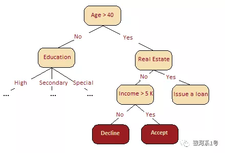 决策树通常是专家经验的概括,是分享特定过程知识的一种手段。例如,在引入可扩展机器学习算法之前,银行业的信用评分任务由专家解决。授予贷款的决定是基于一些直观(或经验)衍生的规则,可以表示为决策树。