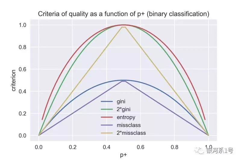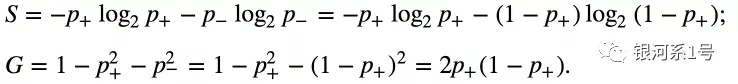 对于二进制分类,熵和基尼不确定性采用以下形式: