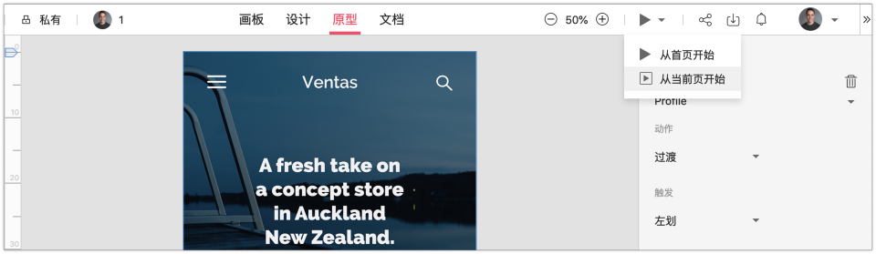 只想看当前页面的演示该怎么办呢?摹客iDoc贴心地给大家新增了一个“从当前页开始”的演示选项:交互制作过程中,当前编辑页效果立即查看;交互制作完成后,从首页开始演示整体效果,使用起来自由度更高了。