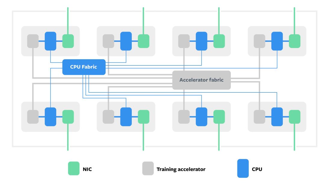 Zion 采用了 Facebook 全新的、与供应商无关的 OCP 加速模块(OAM)。OAM 形状系数让 Facebook 的合作伙伴(包括 AMD、Haban、GraphCore 和 Nvidia)可以在 OCP 通用规范上开发自己的解决方案。通过单个机架使用 TOR 网络转换,Zion 架构让 Facebook 能够在每个平台上自由扩展到多个服务器。随着 Facebook AI 训练工作负载的规模和复杂性不断增长,Zion 平台也会随之扩展。