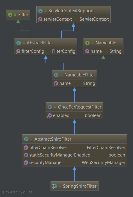 本篇为该系列的第一章,解析shiro过滤器的实现原理,主要分为两个部分,第一部分解析spring启动时shiro过滤器的初始化过程,第二部分解析前端发起一个请求后端过滤器权限验证的流程。由于篇幅过长,本文仅讲解第一部分:Filter的初始化过程。第二部分Filter的过滤流程见下一篇博文