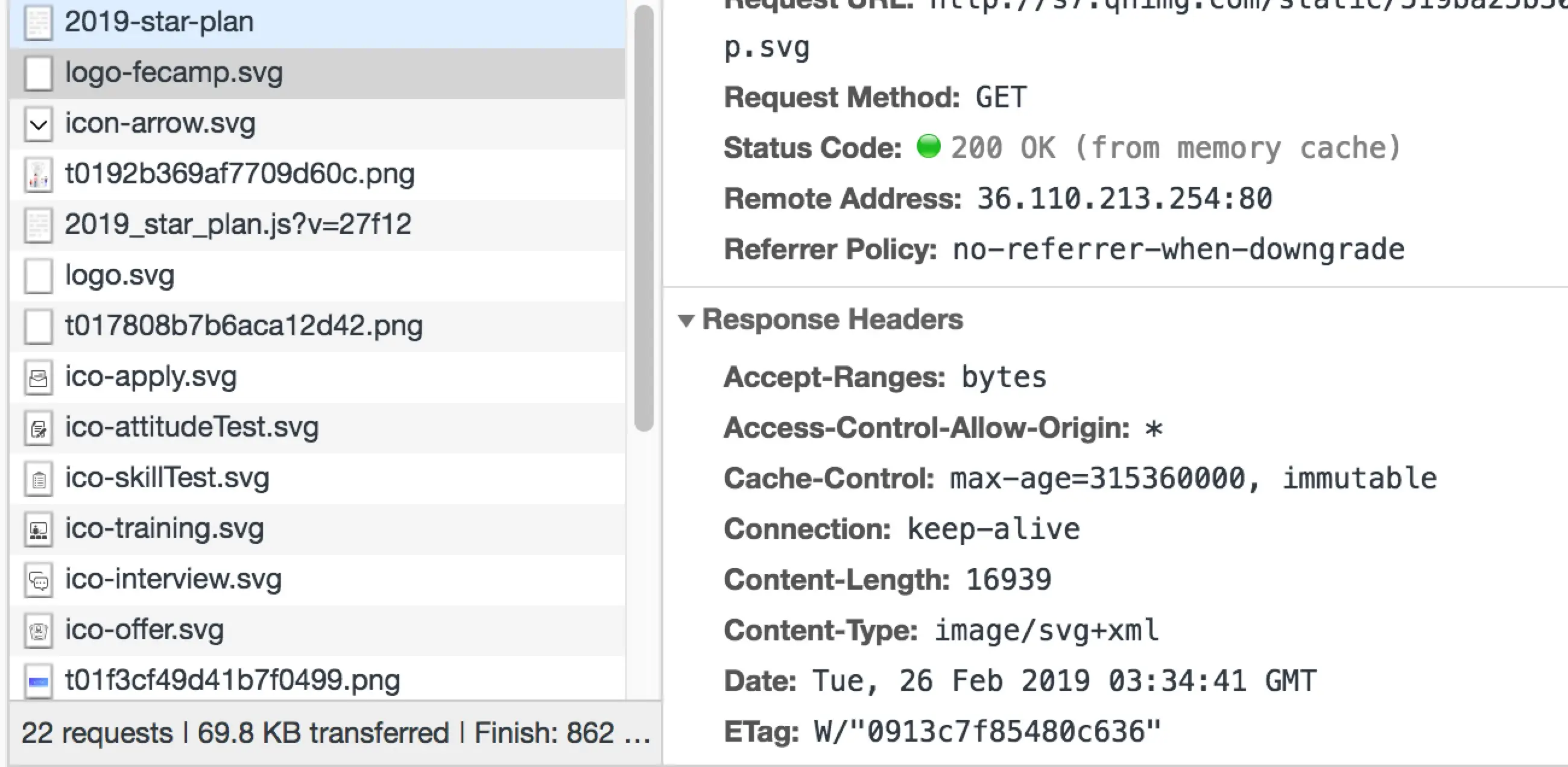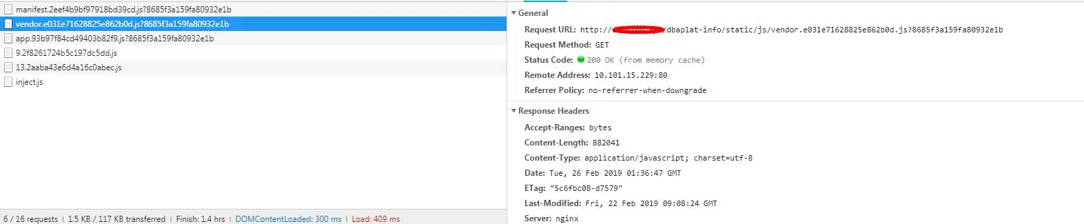 不是看你网页的HTTP请求,是看你的静态资源里面的Response Header里面。一般来说如果你们的静态资源走CDN的话肯定有这个响应头。 你的vue项目打包用什么?如果是Webpack的话,有对静态资源进行hash的插件,如果用别的打包工具也有类似的配置或者插件。