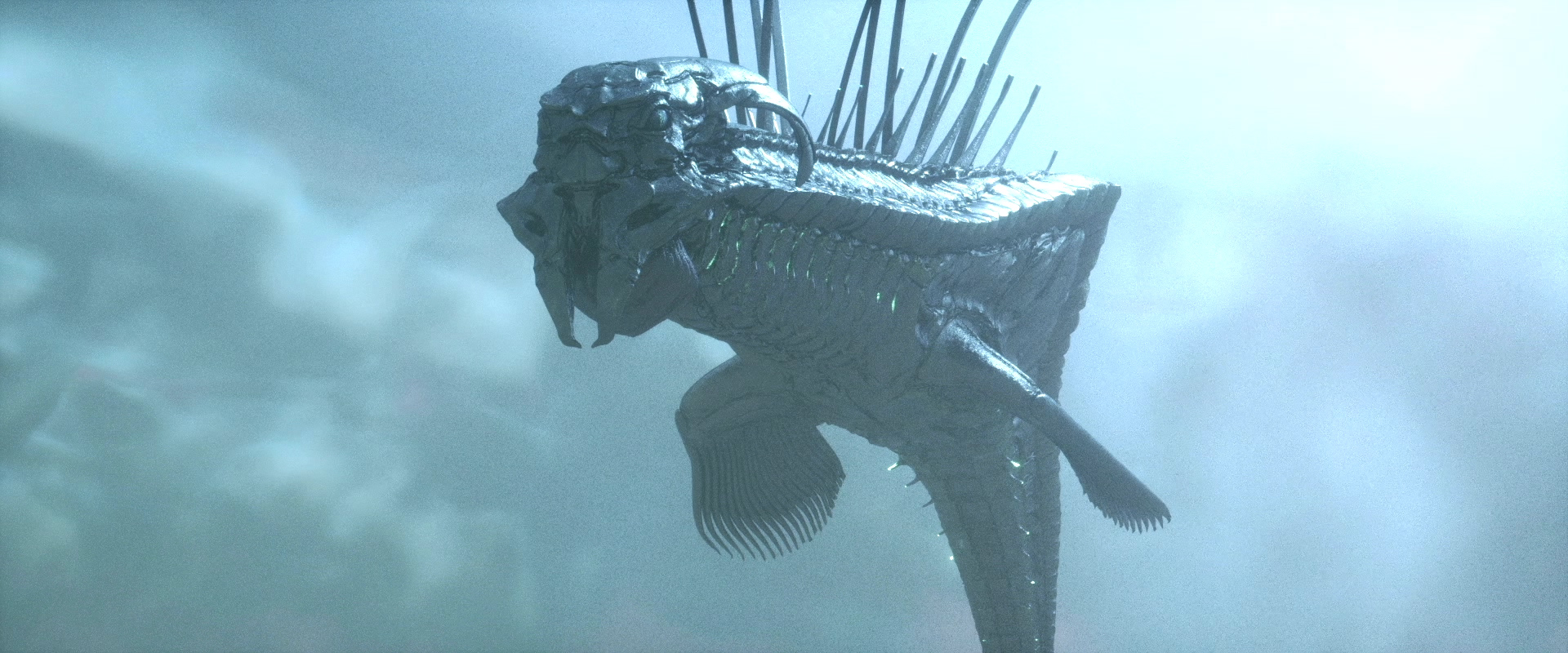 这些物种大小形态不一,表现的是它们各自对环境适应性的不同,有的更适应了陆地的生活,因此触须在下方作为足,比如片初的小型生物,我会希望它们的行为模式更活泼一些;有的干脆从不涉足陆地,持续在大气中飞行,比如片末的大型生物,它们除了收集闪电的触须,甚至为适应流体环境,尾部特化如同鱼尾,行为模式也希望更为庄重一些。