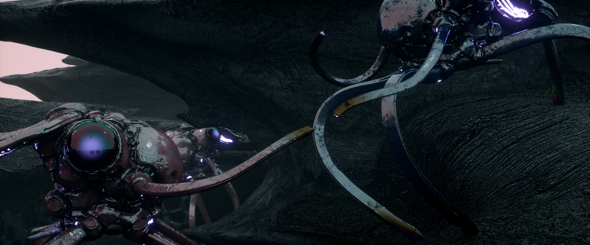 站酷网:此次获得2018站酷奖动画类金奖的作品《Primitive(原语)- 硅基生物概念短片》同时也是你的毕设作品,是什么契机促使你以这样一部外星生命体为原形的科幻短片为大学生活画上句号的?你想通过短片向观众传达些什么?你对这部科幻短片有怎样的期望?结果还满意吗?